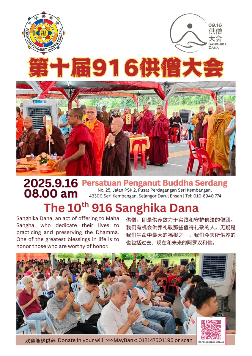 敬请大德填写并附上捐献相关电子或银行转账资料,收据将通过Whatapps/电邮寄出至所列明之电话号码/电邮信箱。捐款账户:马银行,Maybank Acc. No: 0121 4750 1195; Persatuan Penganut Buddha Serdang Selangor.